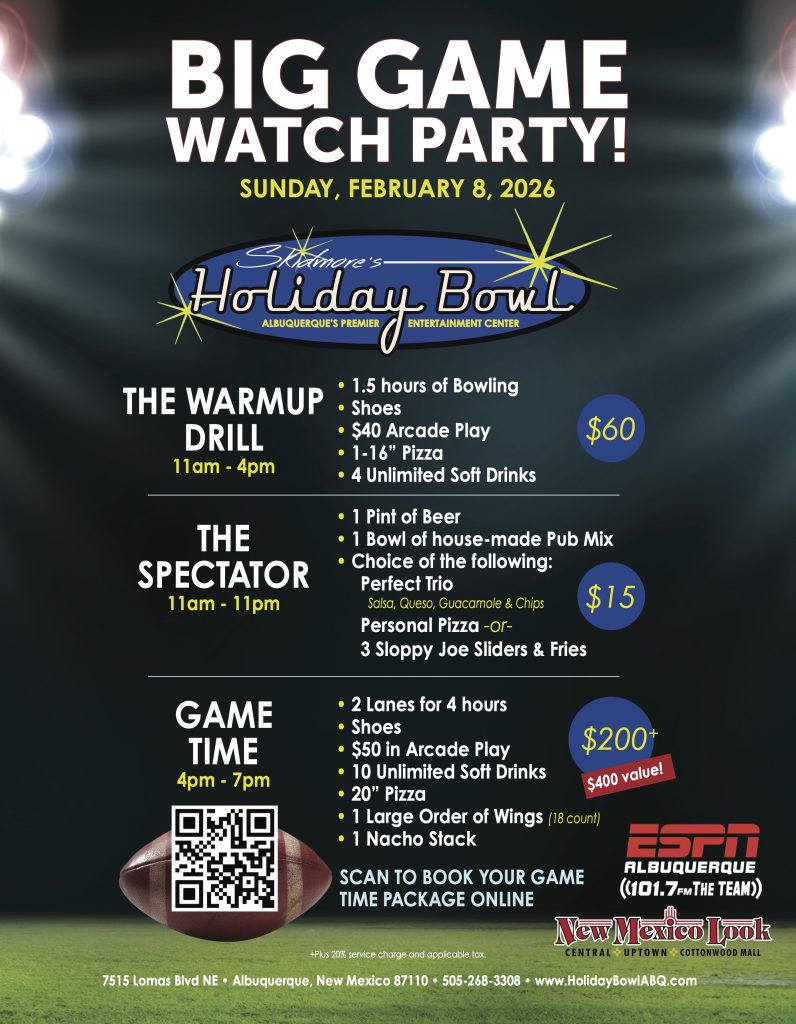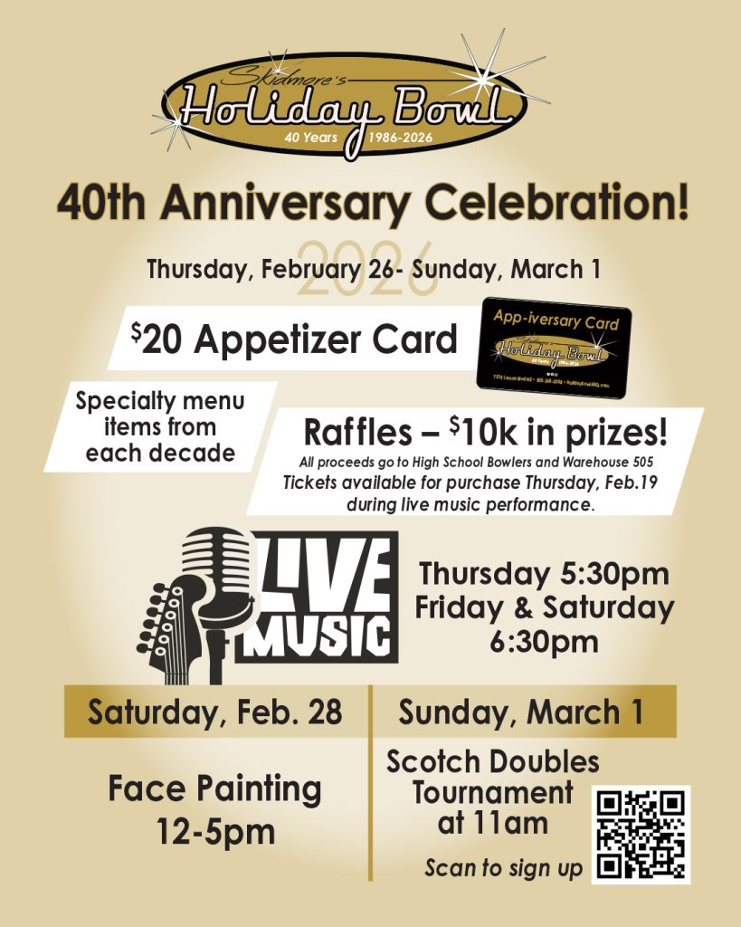Experience nonstop fun at Holiday Bowl, where 26 high-tech bowling lanes meet thrilling arcade action! Each lane features advanced scoring and gameplay along with our state-of-the-art Neoverse screen to keep the energy high. Make your weekend glow with Galactic Bowling—our can’t-miss, music-fueled light show experience. Step off the lanes and into our arcade, packed with over 50 video and prize games where you can rack up points and win big.